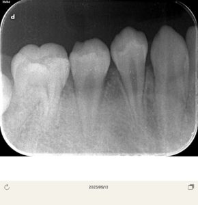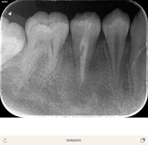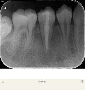 以前冷たいものが染みるということでレントゲンを撮影したが、中心結節が欠けたためと診断し、経過観察を行なっていた。